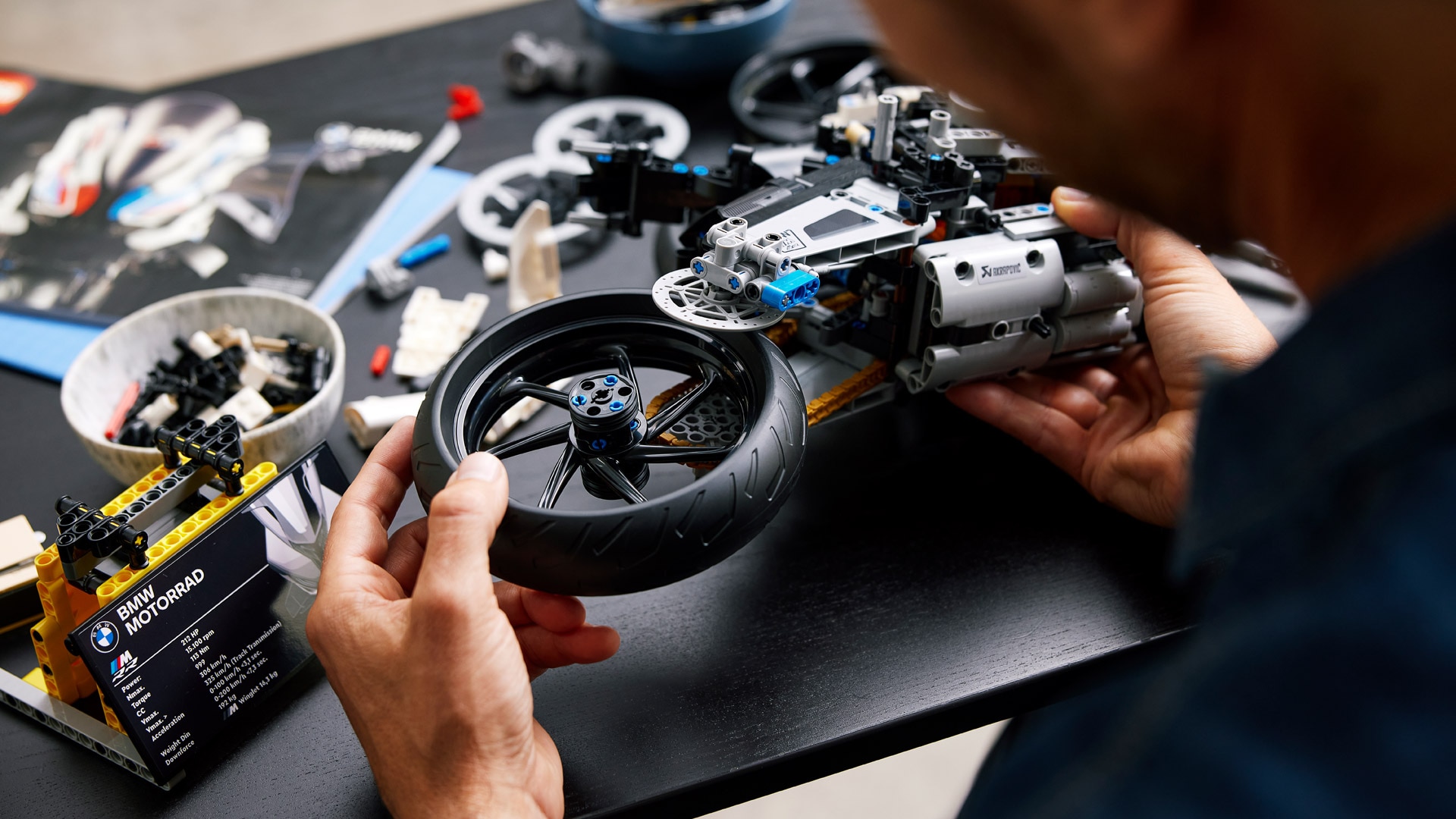 You are driven by the fascinating original. It’s a passion that dominates you. For you, every detail, every millimetre, every technical feature counts. You love this feeling and bring it to life on the street, on the racetrack and now finally also at home: the first M LEGO® model ever and the largest LEGO® Technic motorcycle model to date has been created in close cooperation with LEGO® Technic designers: The LEGO® Technic M RR at a scale of 1:5. The specifications were clear – maximum precision to make what had previously been impossible possible. Parts were designed from scratch if they did not meet the strict requirements, something that was also done with the original. That’s exactly what “Born on the Racetrack. Build at home.” represents.