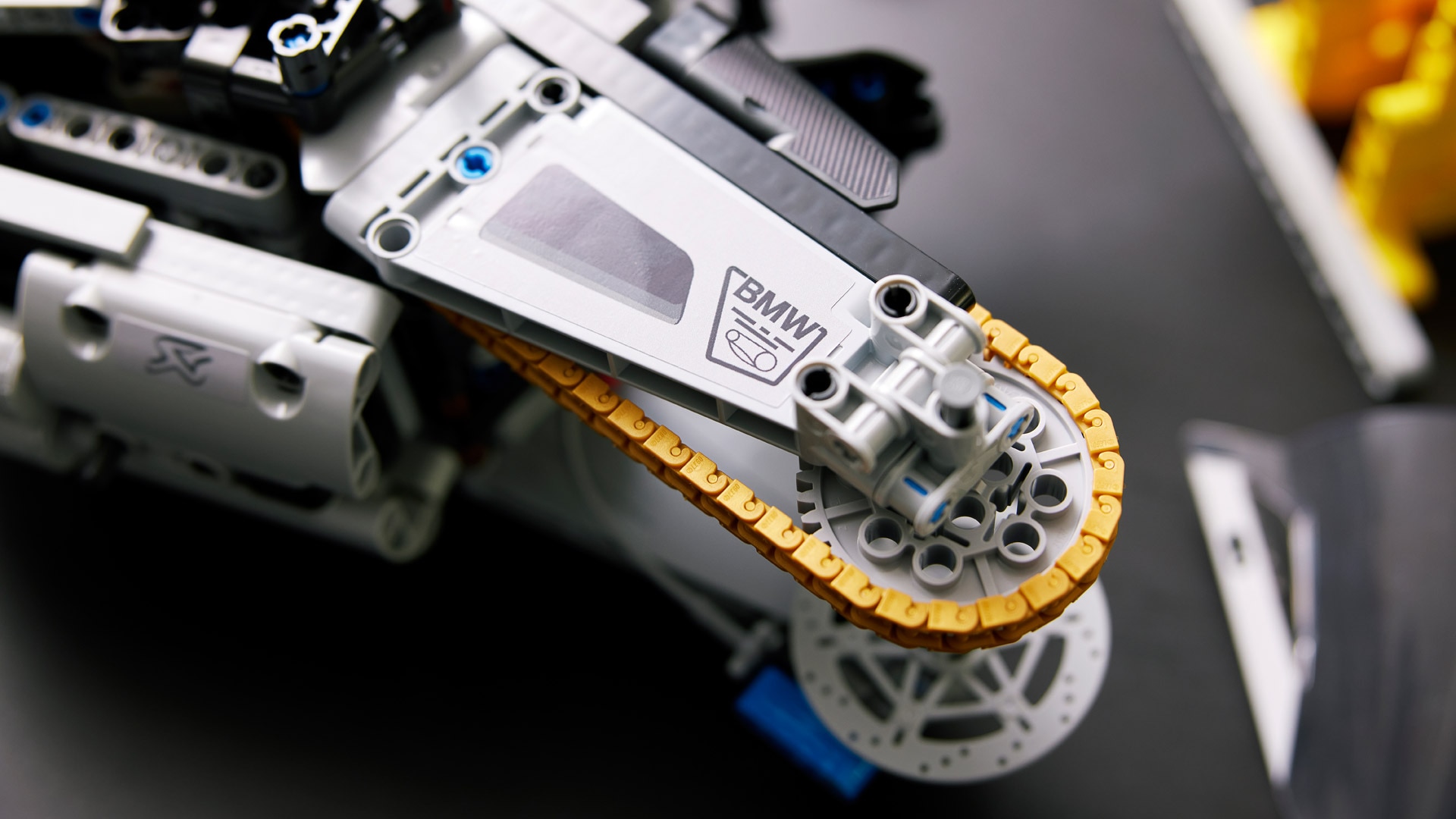 The scale of 1:5 was a real challenge for designers. However, it also enabled them to reproduce the lines, angle dimensions and M RR-specific components more precisely than ever before: Every element needs to have an original equivalent – right down to the carbon-fibre and milled parts of the exclusive M Competition package. The front and rear suspensions alone carry a weight of 1.4 kg. A genuine feat of engineering for which new LEGO® Technic elements were specifically designed. The rims, brake discs and windscreen are also fully custom-made products that were extensively tested before series production. Just like the real M RR.