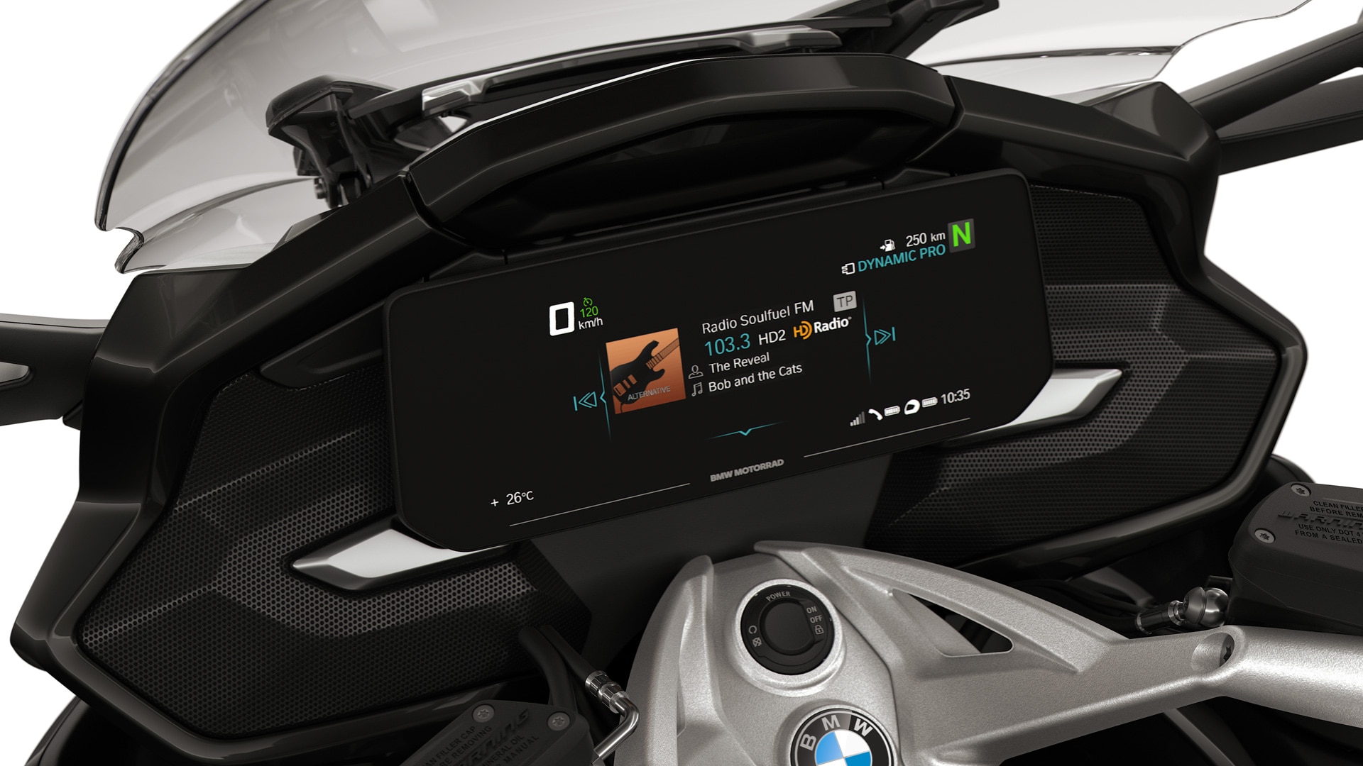 Focus on the TFT display and the K 1600 GT’s speakers.